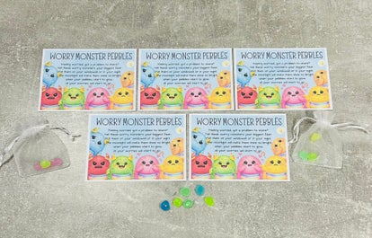 does your child worry? well look no further this pebble is a worry monster they can tell their worries to him and make it all go away <3